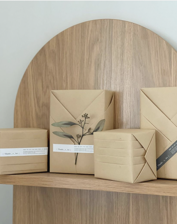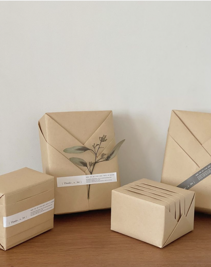 같은 포장법이라도 포장지 소재에 따라 전혀 다른 느낌을 갖게된다. 먼저 감성과 형식, 두 가지 기준으로 고른 '크라프트지'와 '보자기' 선물포장에 대해 살펴보고, 포인트가 되는 리본 제품은 보다 자세히 추천 해보려 한다.